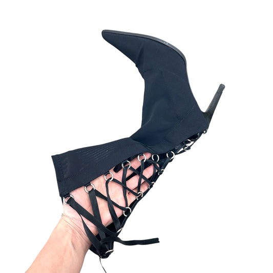 Pointed mesh lace-up boots