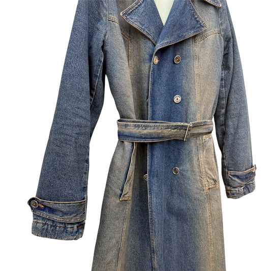 Floor-length denim trench coat