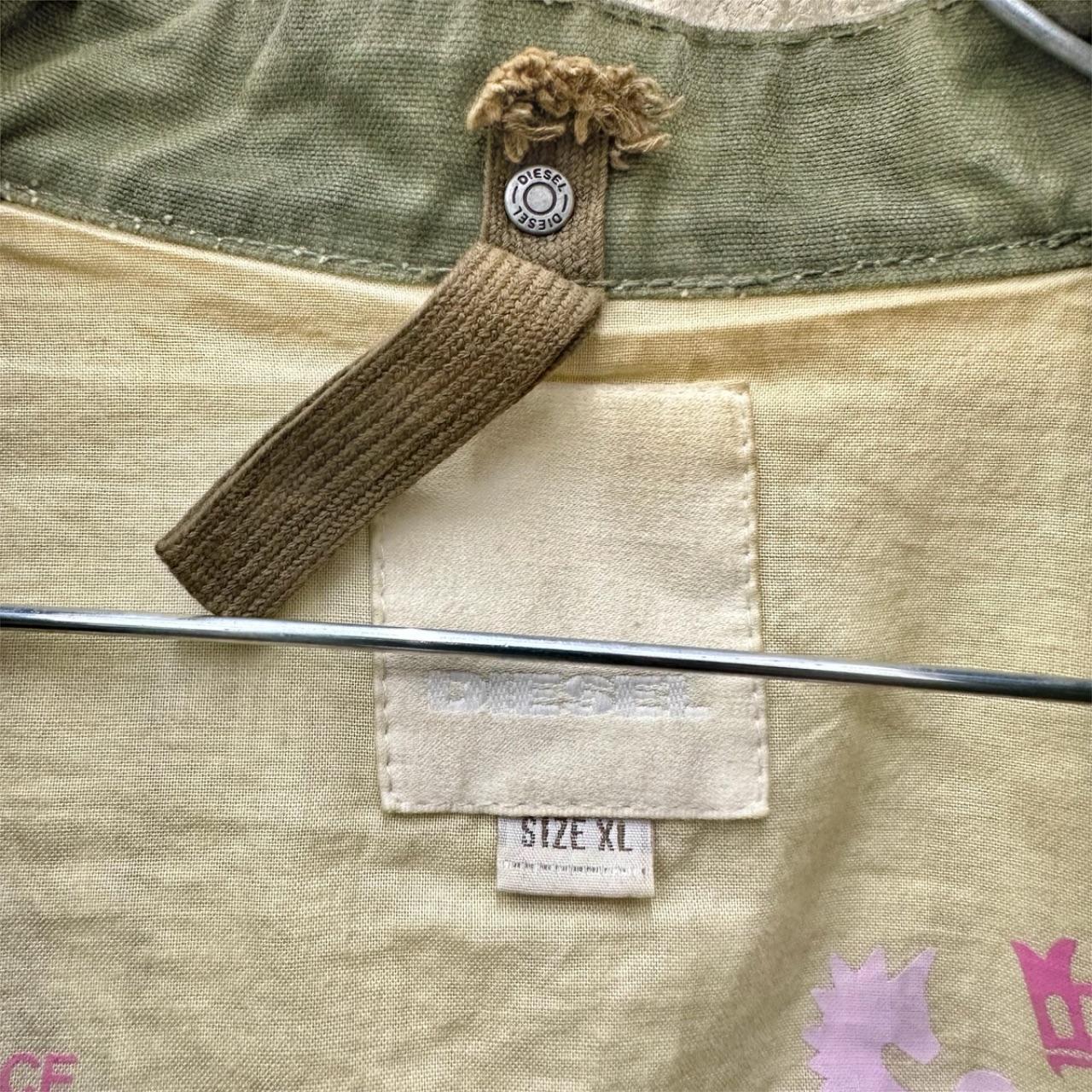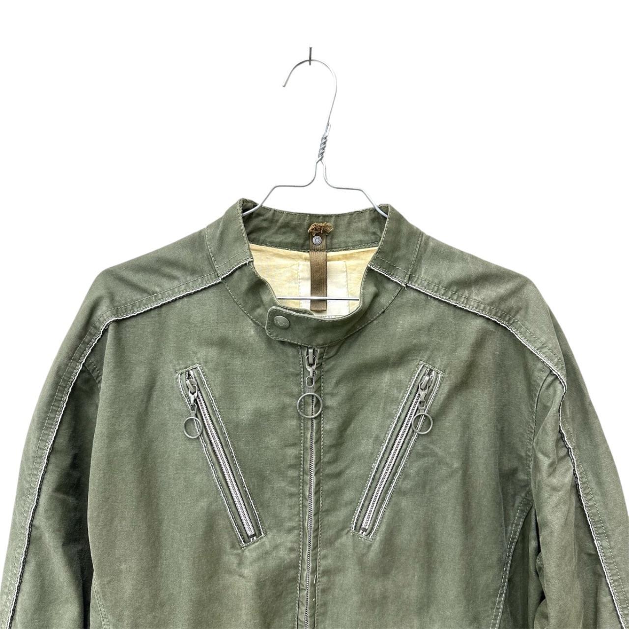 Vintage Diesel Men's khaki slim fit biker racer style military jacket with full frontal zip closure with snap button zippered pockets and zips on cuffs.