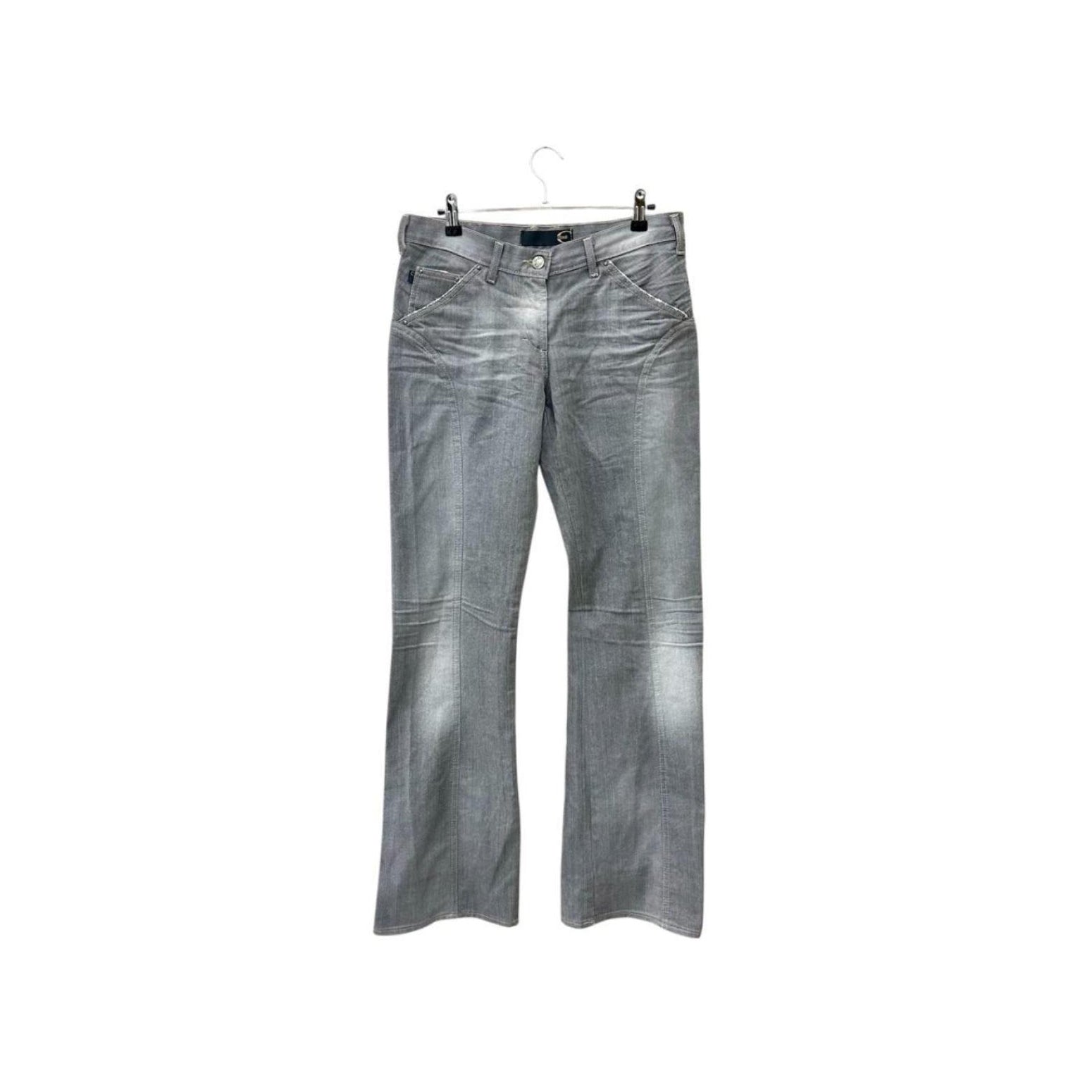 Y2k Just Cavalli grey stonewash faded wide leg bootcut jeans with stitching down the leg at the front and back.